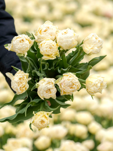 Высота бокала...................5 см Высота растения..............45.+ Цвет....................................кремовый Форма бокала....................пионовидный Упаковка.............................20 шт (банч)